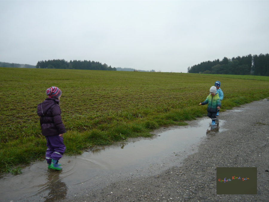 4. Erleben der Jahreszeiten: Ich lege Wert darauf, den Kindern einen Bezug zur Natur nahezubringen. Dieser wird durch den möglichst täglichen Aufenthalt im Freien, sowie durch jahreszeitliche Bilderbücher, Fingerspiele und Geschichten erfahren. Nur bei absolut schlechtem Wetter, wie zum Beispiel Dauerregen, Sturm oder extreme Kälte, bleiben wir im Haus.